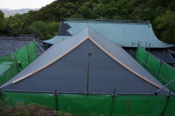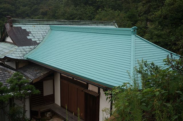 | 鋼板に葺き替 山側から見た感じ |