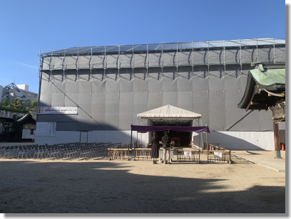 本殿御屋根の葺き替え工事が行なわれている本殿前斎庭にて神事が執り行われました