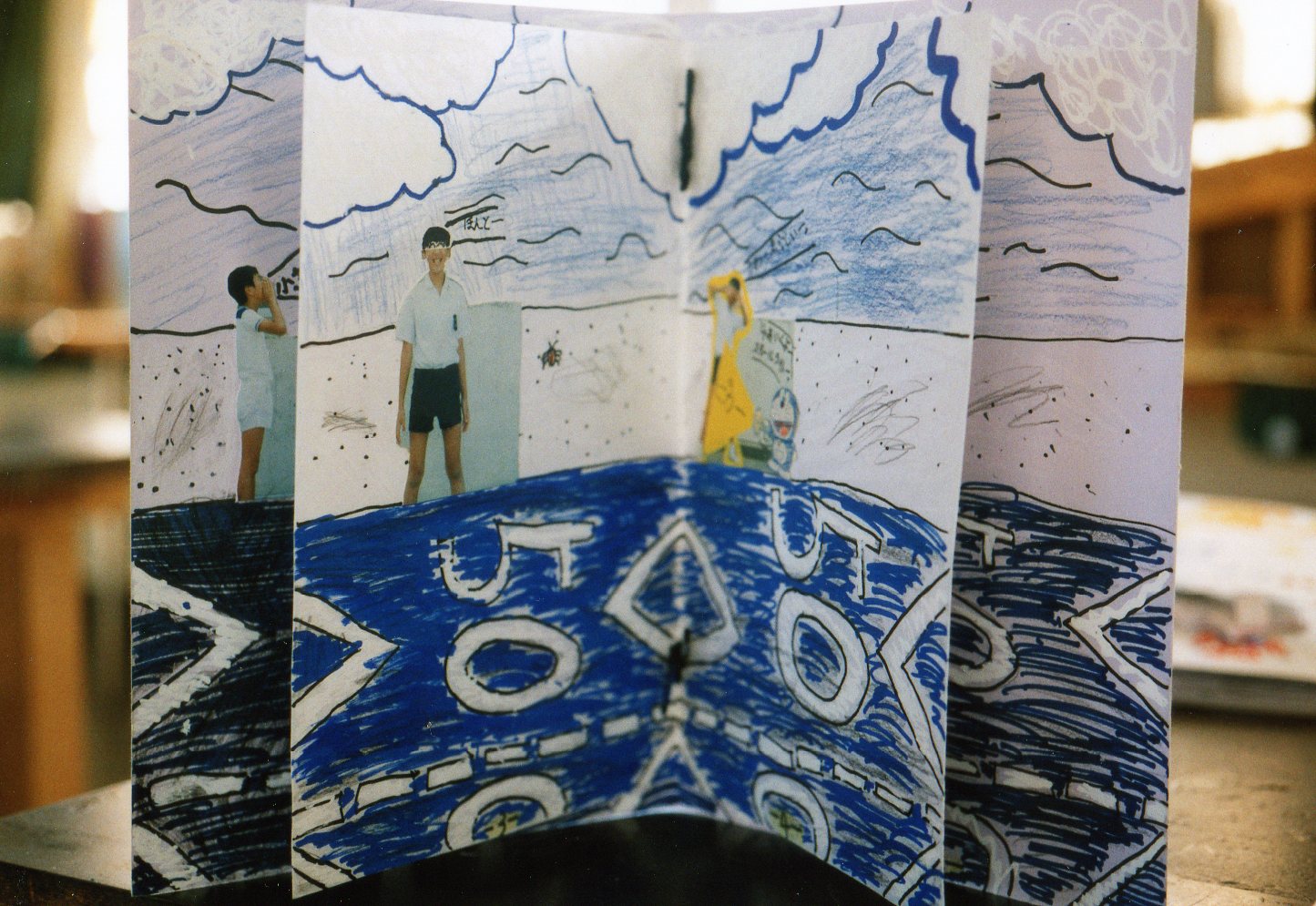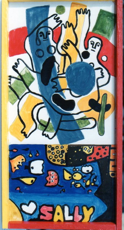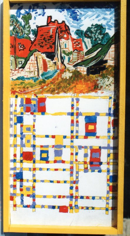 子どもでも扱える名画を探してきて(ミロやモンドリアン)、コリントゲームの板絵に表す。学級人数11人の少なさがこだわりに比例することもある。子どもたちは「何かすごい絵をかいている」という自信を作品に残してくれた。