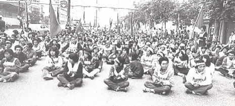 | 実際、解放同盟のいくつかの県連青年部なんかは、突入も辞さないという構えを見せていた。また、新左翼諸派、いくつかの労働組合の青年部なども機動隊の壁に突入する動きを見せた。 |
