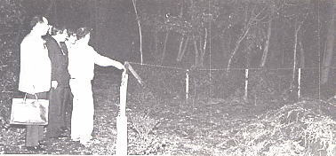 | そして、5月30日付けの警官の報告書をもちだし、、「男女の別はわからないが、誰かが呼ぶような声が聞えたので、親戚に立寄っている妻がお茶を持って来ながら、誰かに襲われたような感じがした。しかし、親戚の方向を見たが誰の姿もないので、仕事を続行した」 と話しており、 |