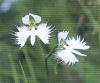 私が学生の頃、年一回ここを訪れ湿原植物の分布調査を行った。数ある植物群落の中でも特に注目したいのが「サギソウ」(写真右)である。サギソウは8月上旬から白い花を咲かせ、人気のある湿原植物である。ところが近年、休耕田が増加し、それに伴ってアシが茂り、湿原が失われつつある。したがってサギソウの生態にも悪影響を及ぼしている。そこで、サギソウの保護活動が始まった。