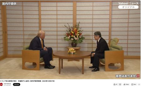 🔵トランプ米大統領が来日。天皇陛下と会見=宮内庁提供映像(2025年10月27日)。🔵