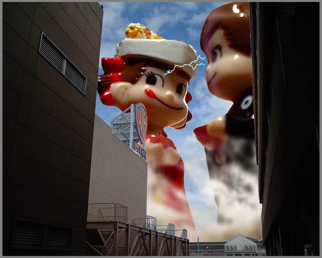 ヒステリー暴走のぺコちゃんを止めるべくポコちゃんも巨大化!