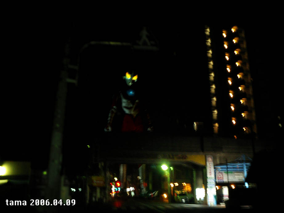 せっかく背景の手ぶれに合わせて偽ウルトラマンもぶらせたのに、手ごろなサイズに縮小すると、