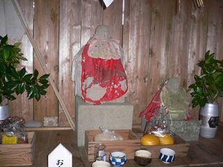 | 木製の仏像にもいわれがある。 (調査中) (風に飛ばされて倒れたか? 首から上が無くなっている)残念。 お大師様の 堂守 (管理者) 島中地区 久岡 浅子 松原地区 吉村 栄男 (R5年4月1日に替わりました) 竹内寛道 分身墓 |