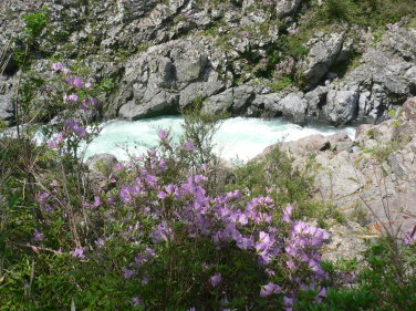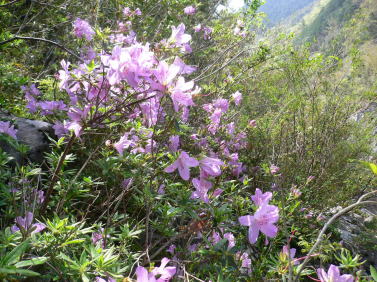川つつじ 洪水などの濁流に傷つけられても5月には、 しっかりとピンクの花を付け石にしっかりと根を張らしています。 |
