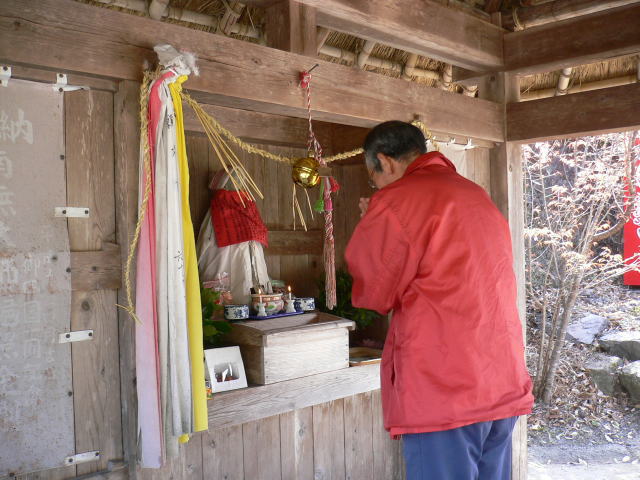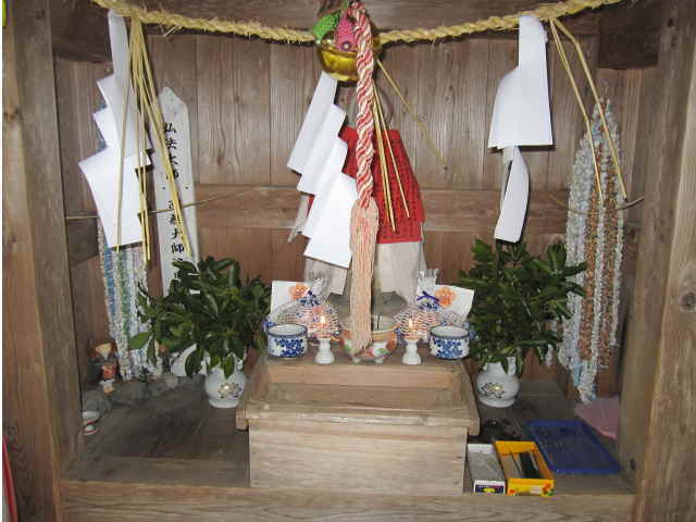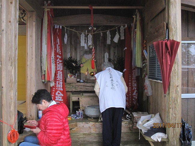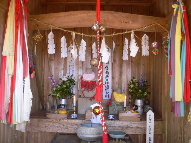 お茶堂の中には、御大師様をお奉りしています。 年老いて山に上がれない方が、ここでよくお参りをしていましす。 |